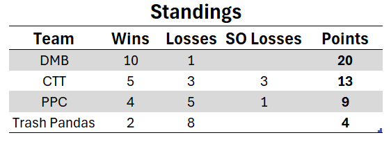 Dirty Mike and the Boys (DMB) over Cole's Troll Toll (CTT), 3-2 for their 2nd straight DCBH Title.